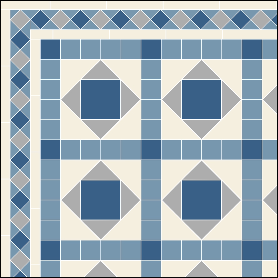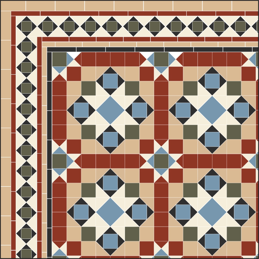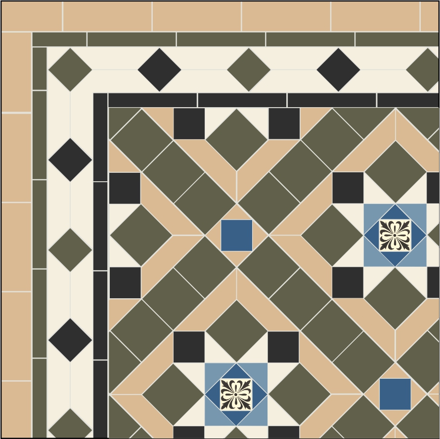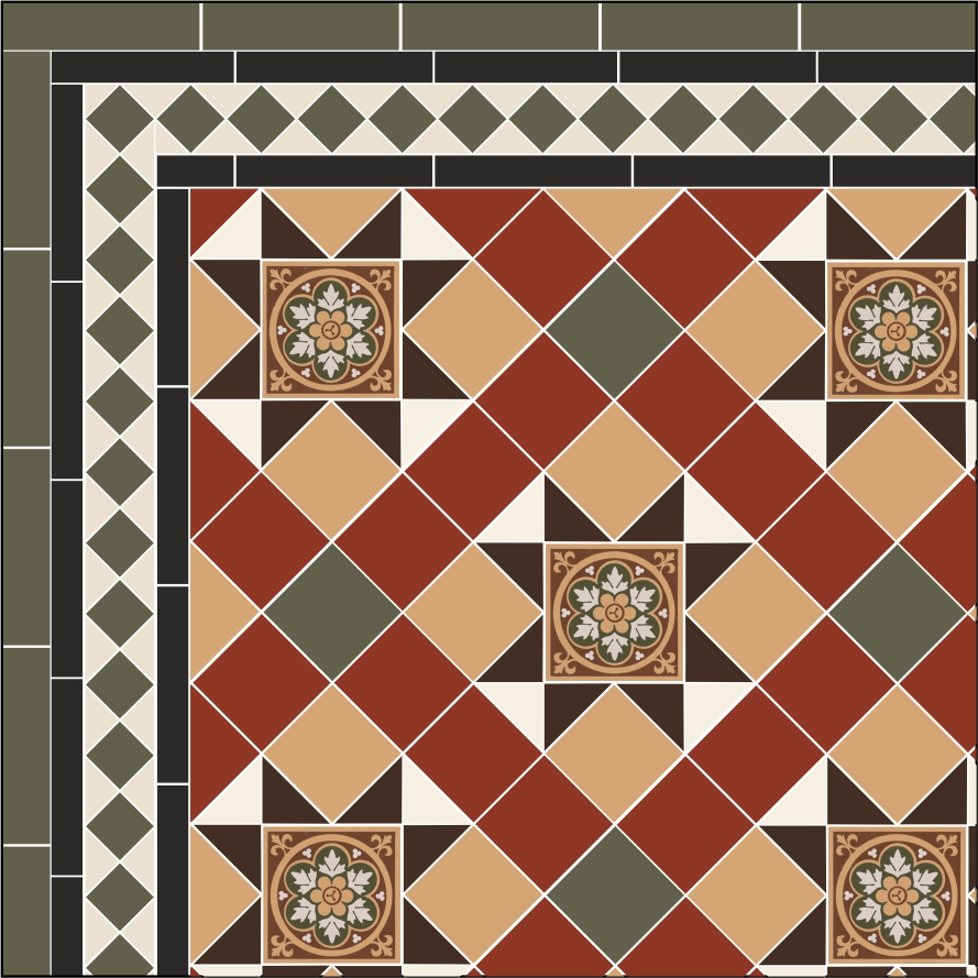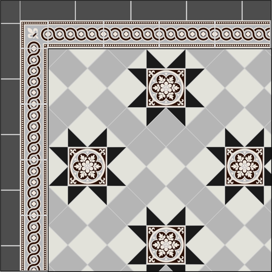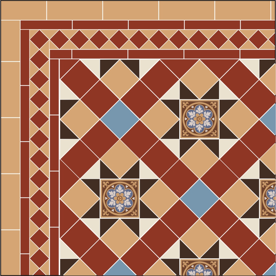 Use our simple form to get a rough price for your period Victorian, Edwardian or Minton-style floor. Fill in as many forms as you like if you have lots of ideas and we will get back to you with a price for the tiles. The options below are just an example - if you would like to tweak the colours or patterns, get in touch and we will work with you to create your perfect floor.